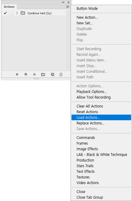 1) Window(창) → Action(액션) → Load Action(액션 불러오기)을 실행합니다.