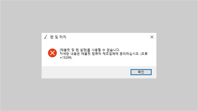 "[태블릿 및 펜 설정]을 사용할 수 없습니다. 자세한 내용은 태블릿 컴퓨터 제조업체에 문의하십시오. (오류