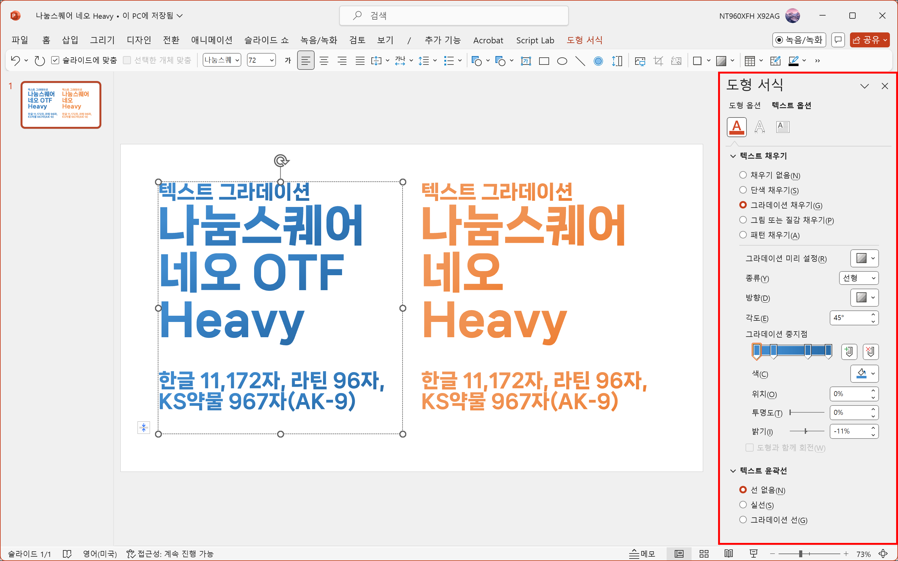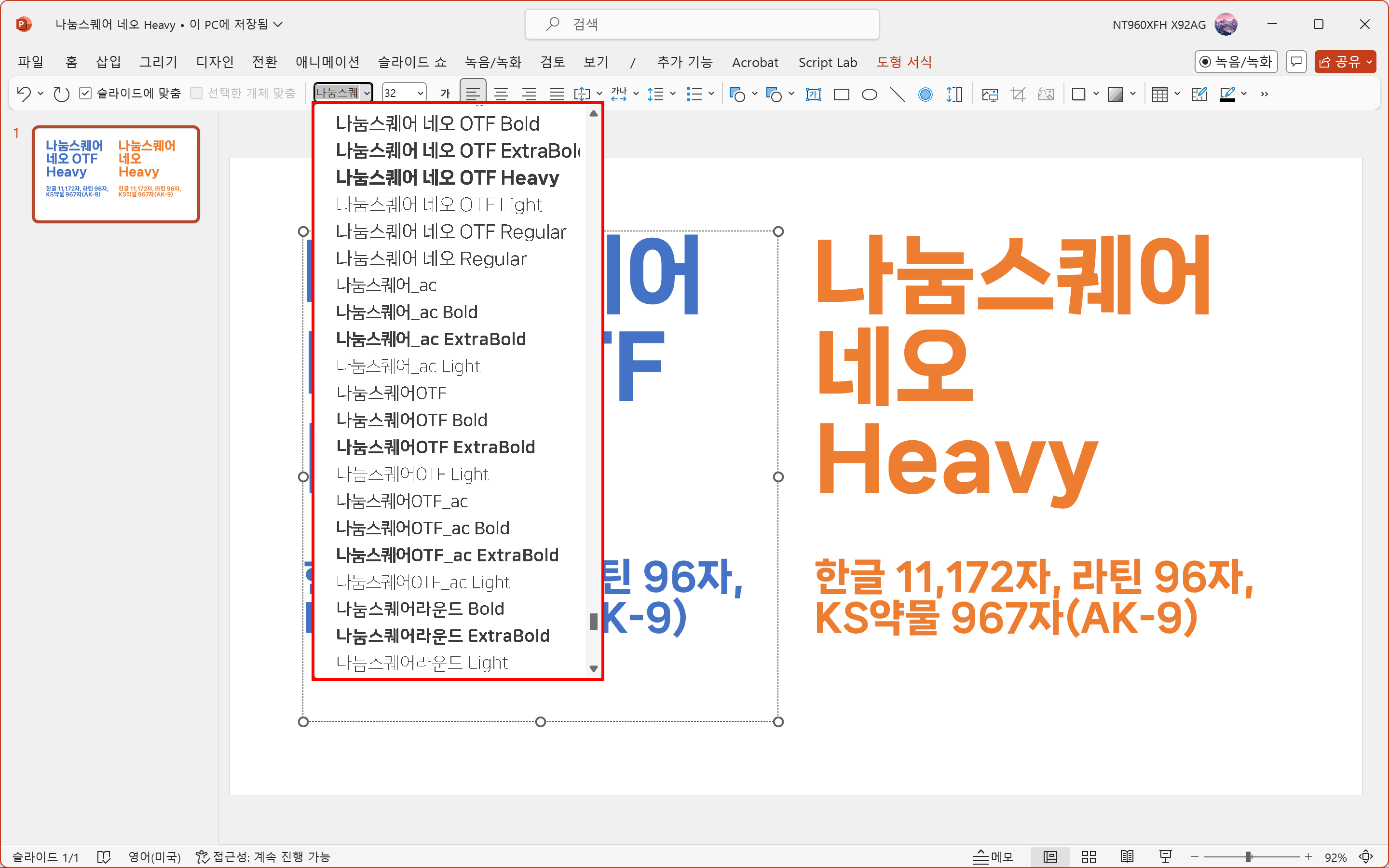 ※ 일부 OTF는 파워포인트 폰트 목록에서 여부를 확인할 수 있습니다.