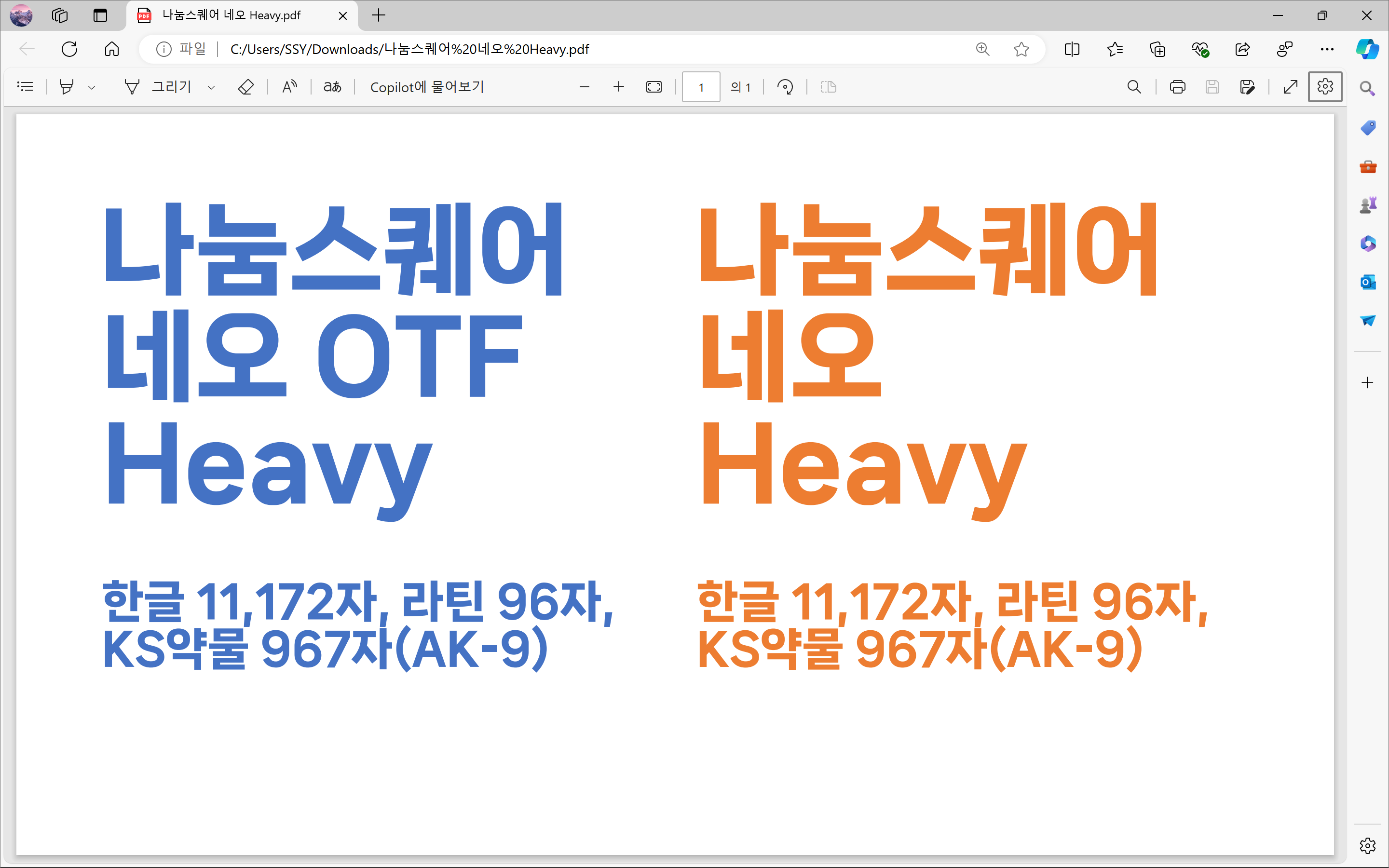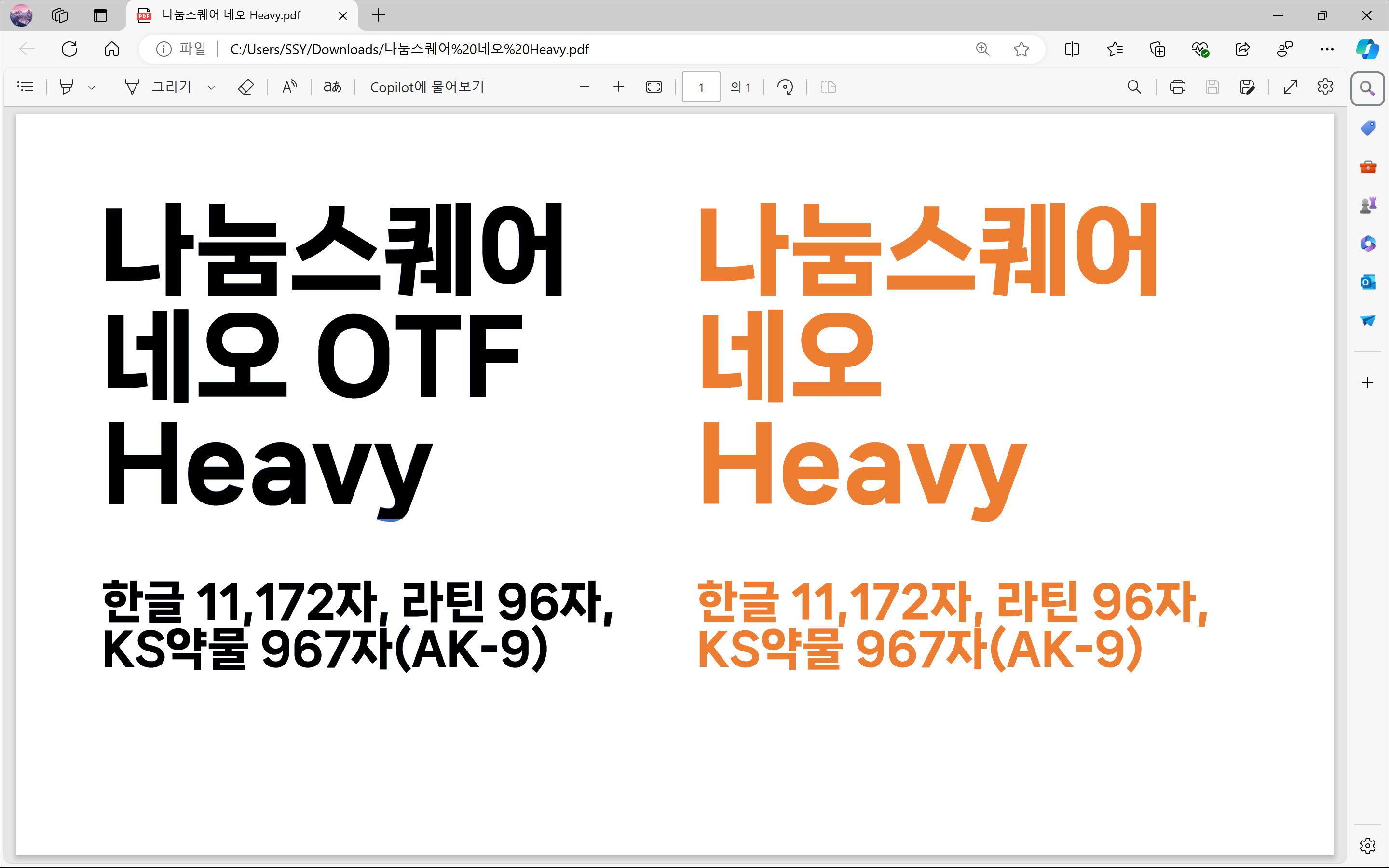 23년 6월 업데이트 이후 발생한 OTF(Open Type Font) 연계 오류입니다. 다양한 사용 환경을 고려해야 한다면 간단한 해결은 어려우며, MS에서 오류 수정 전까진 케이스에 맞는 예방이 최선일 것입니다. 발표, 인쇄, 온라인 게시 등 최종 매체를 고려해 적절한 방법으로 대응하는 것을 권장합니다.