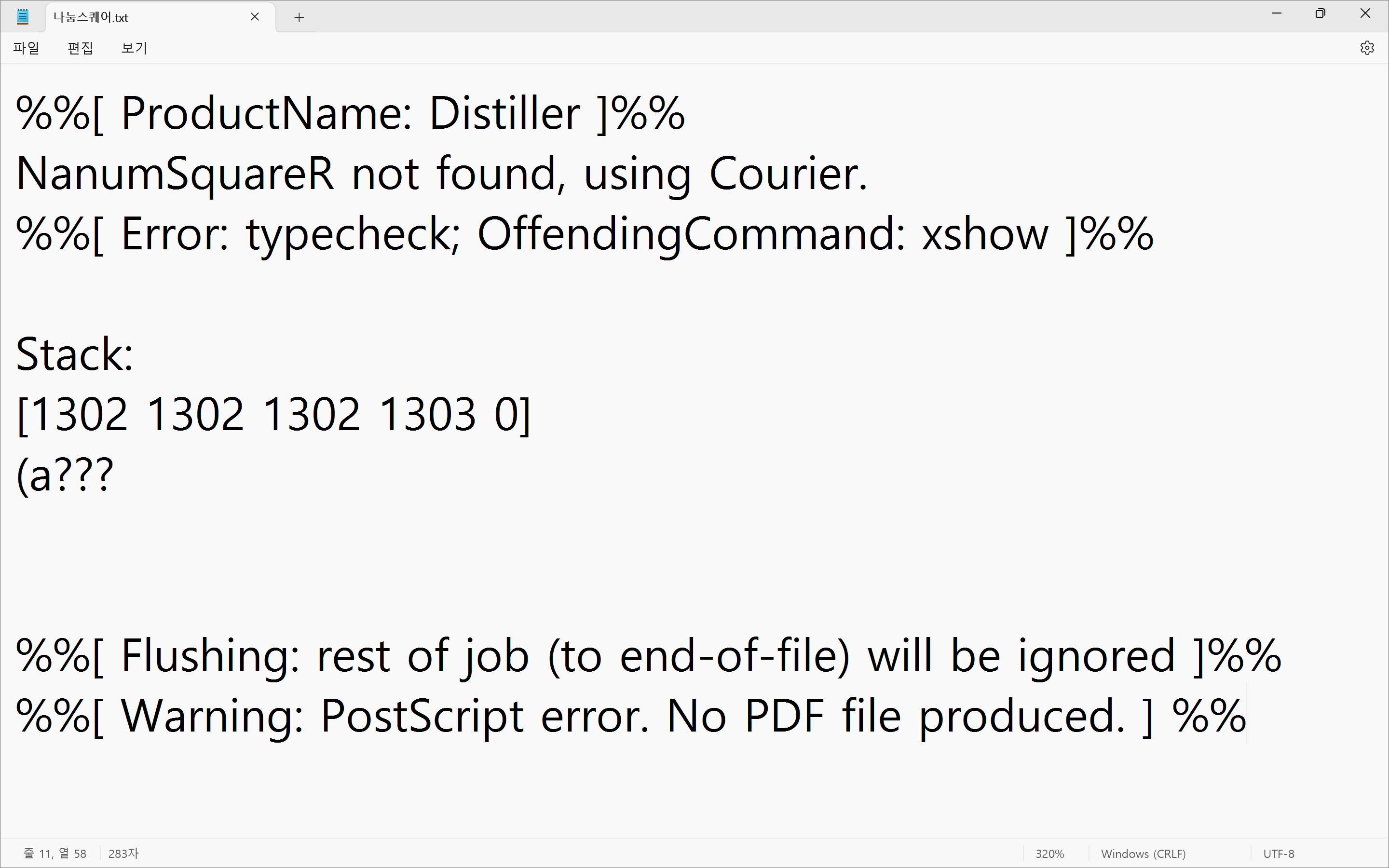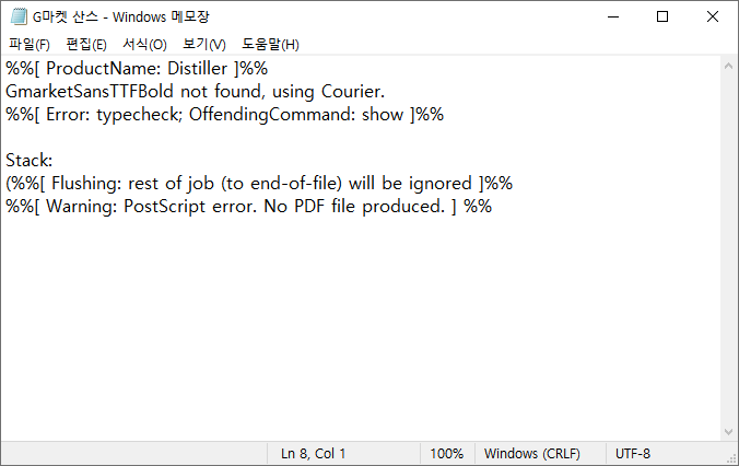 "파워포인트 PPT 문서를 애크로뱃 PDF로 변환하는데 %%[ ProductName: Distiller ]%% 라는 문구가 뜨며 안됩니다."